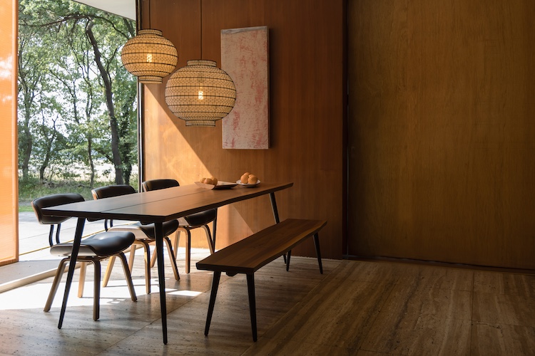 - In a dining space, the table (and the pendant light above it) set the scene.
