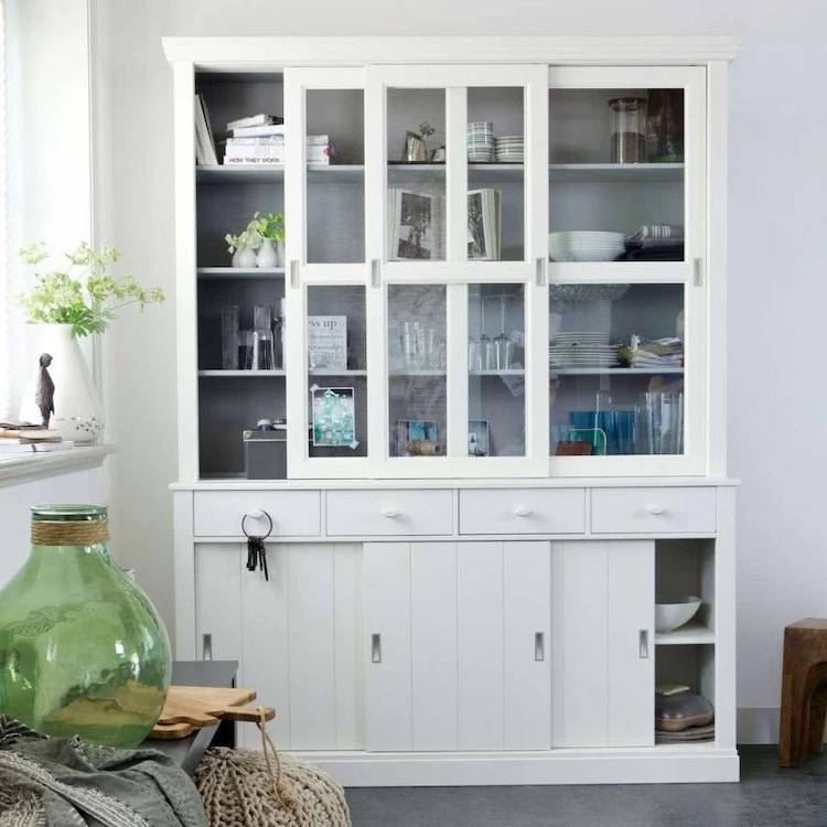 Glass-fronted cabinets work particularly well in farmhouse and Scandi-inspired interiors, where texture and natural materials shine. They allow you to keep things accessible while maintaining visual order.