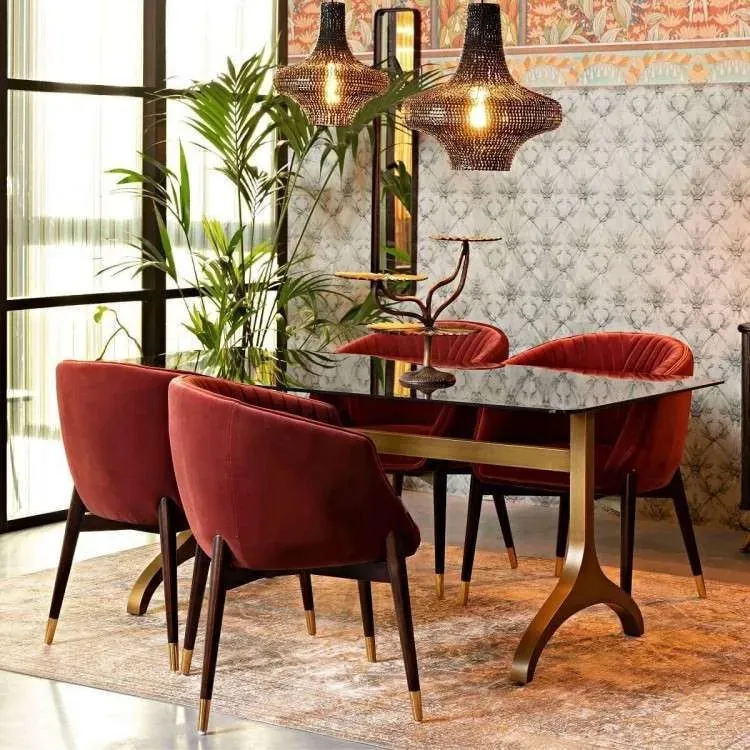 - Rich, luxurious textures like lacquered wood, velvety upholstery, and inlaid stone.