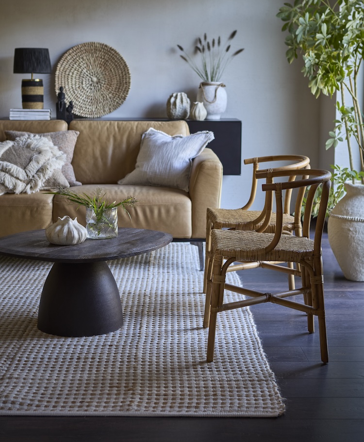 Expect to see woven fibres, tapestry-style wall hangings, textured plaster, and heavily grained timber used alongside soft furnishings that celebrate tactility.