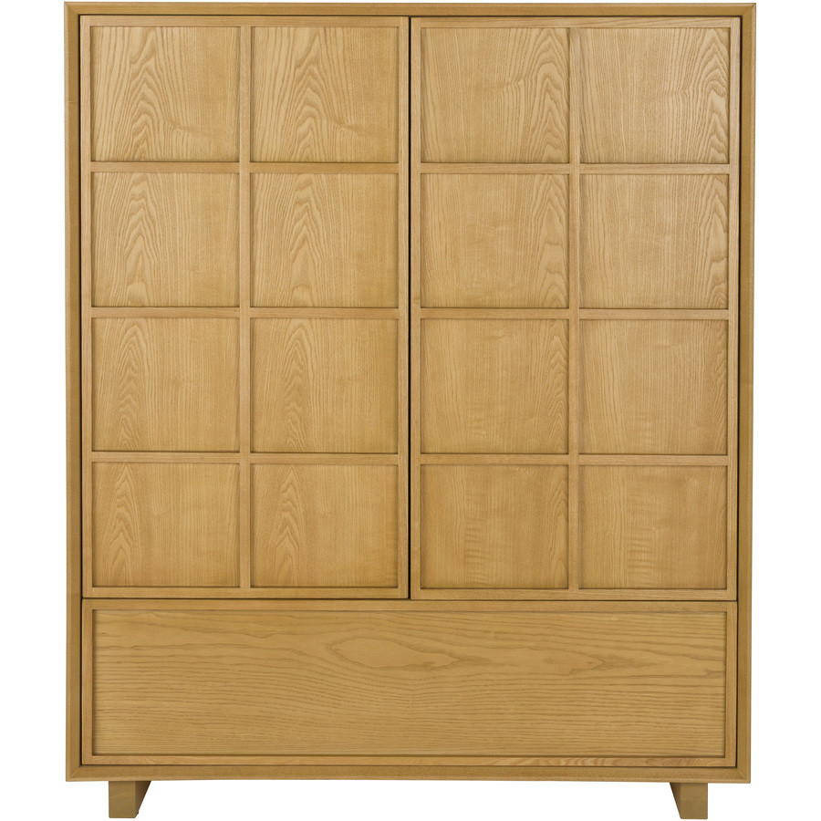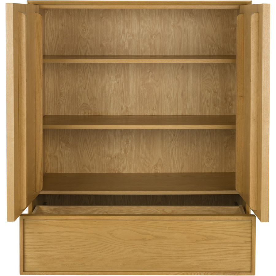 Made from solid rubberwood with an ash veneer, the light wood tones bring an easy elegance and sense of calm to your space. The slatted doors provide added visual interest, while the elevated legs give a...