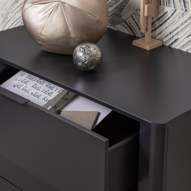 Thanks to its rounded corners, modern finish, and matte lacquer, the chest of drawers is not only functional but also an addition to any interior.