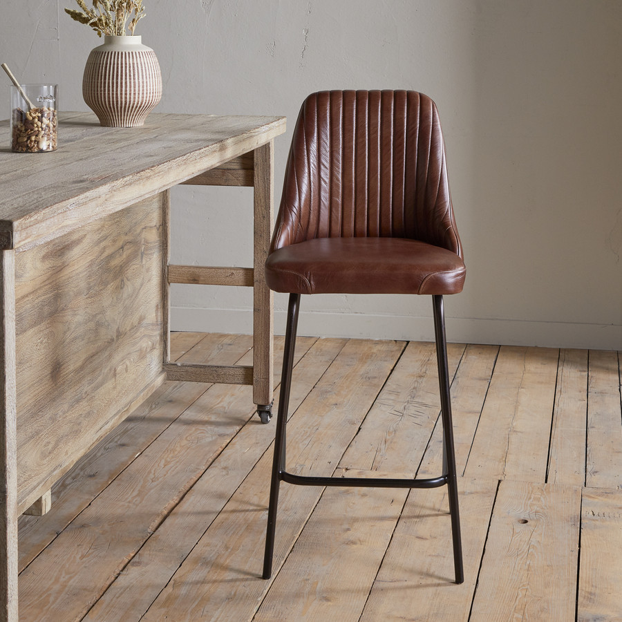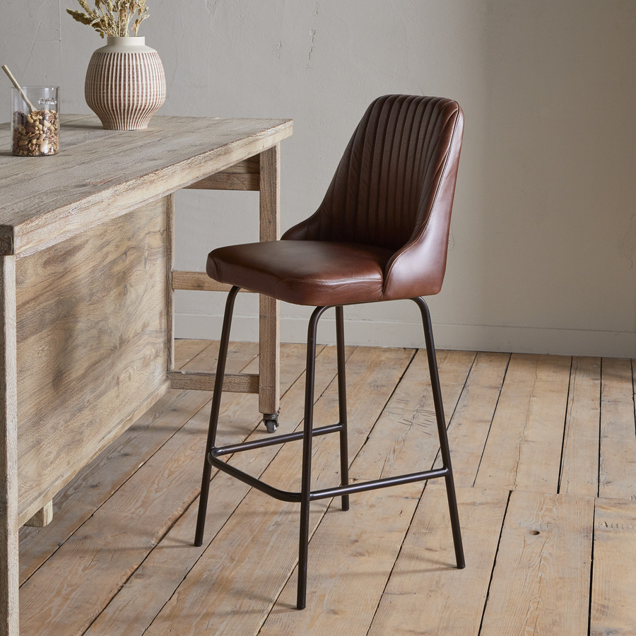 Luxuriate with the tan ribbed leather and iron bar stool - a style classic for any contemporary industrial or urban styled space. With it's sleek iron frame, stitched ribbed detailing across the soft, snug and sumptuous leather seat, this is a seriously satisfying stool! Available in two sizes to ensure the best fit for your bar, counter or kitchen...