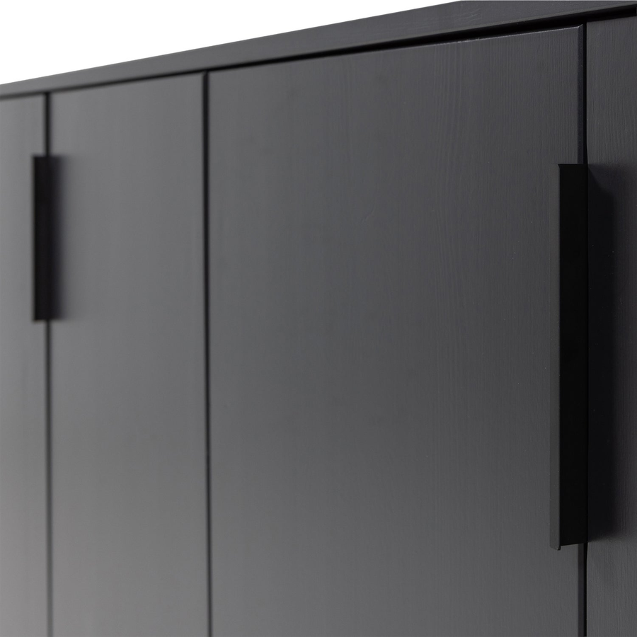 Sleek and modern, those are the characteristics of the Gunnar TV stand, from Dutch interior design brand WOOOD. Store your accessories safely behind one of the four doors and enjoy an evening of TV watching on the couch. This spacious TV stand has a matte black or mud finish and is a stylish addition to your interior!
