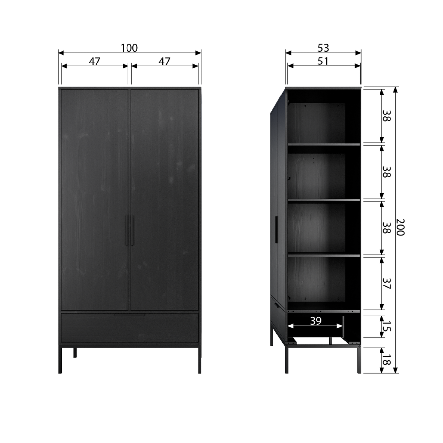 The clever Dennis Solid Pine Wardrobe with 2 Drawers has every base covered when it comes to storage!The Danish designers at Woood have included a hanging rail for longer garments, four compartments for folded clothes, shoes and accessories and two drawers for hiding smaller items away. This solid pine, sturdy piece is sure to be right at home in any...