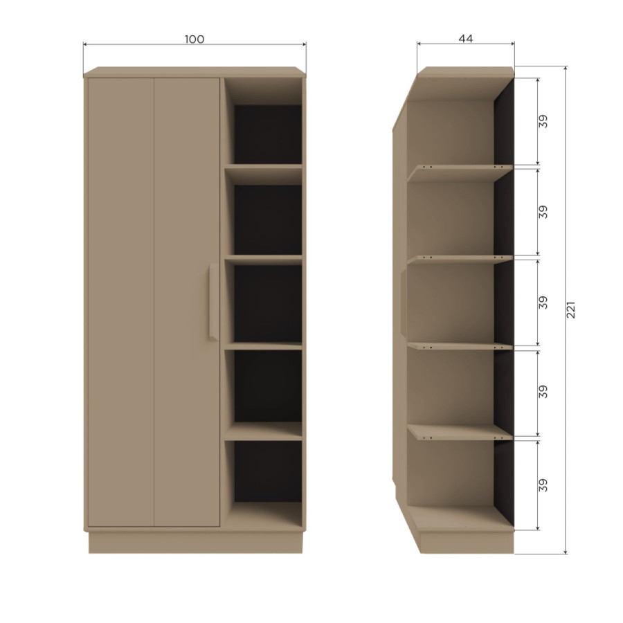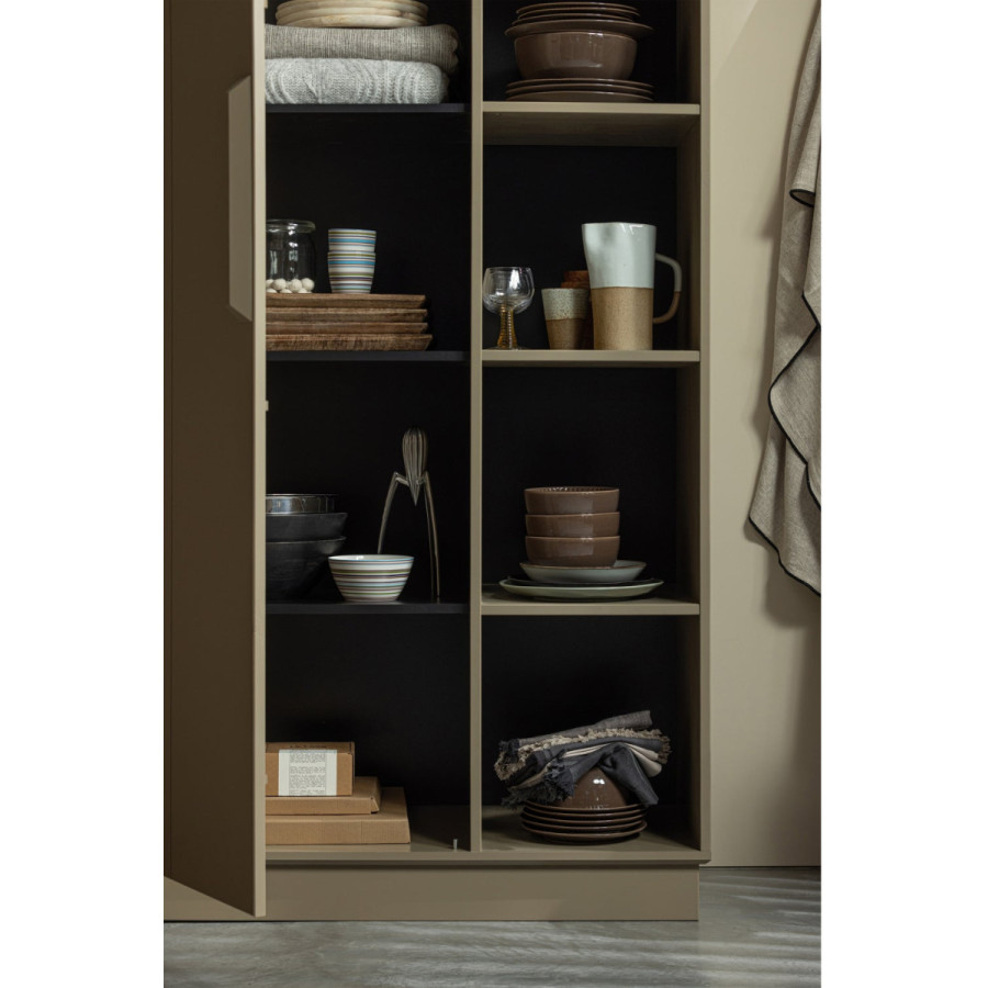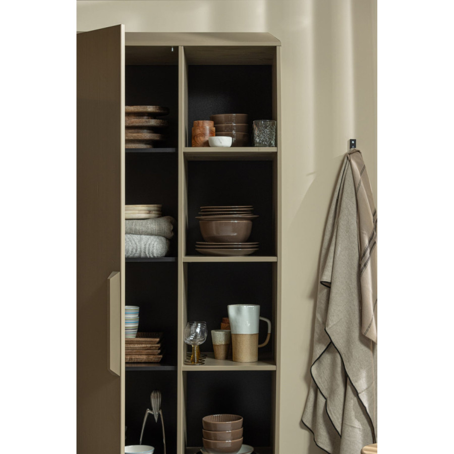This tall, narrow cabinet with a fully closed door offers plenty of storage space without disrupting the tranquility of your interior.